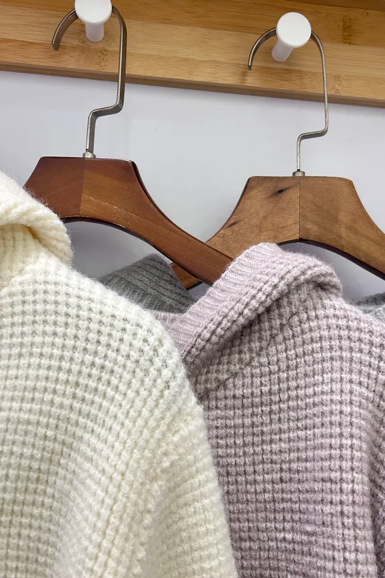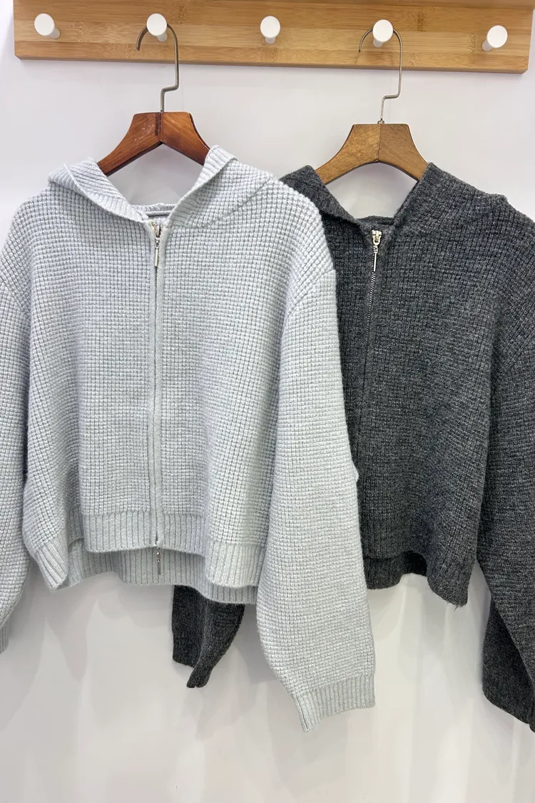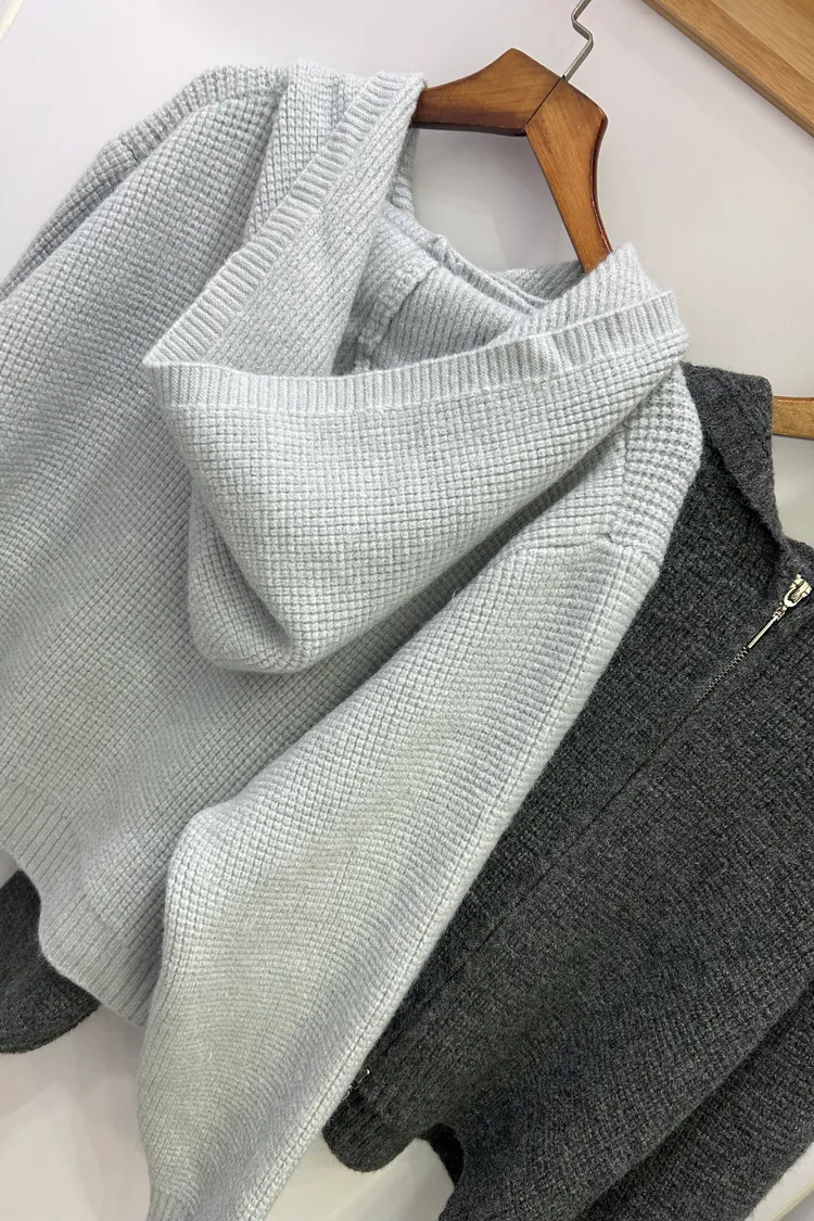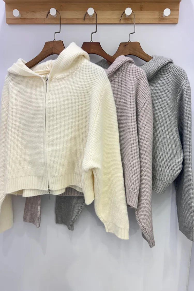 鬆餅格針織連帽/雙向拉鏈