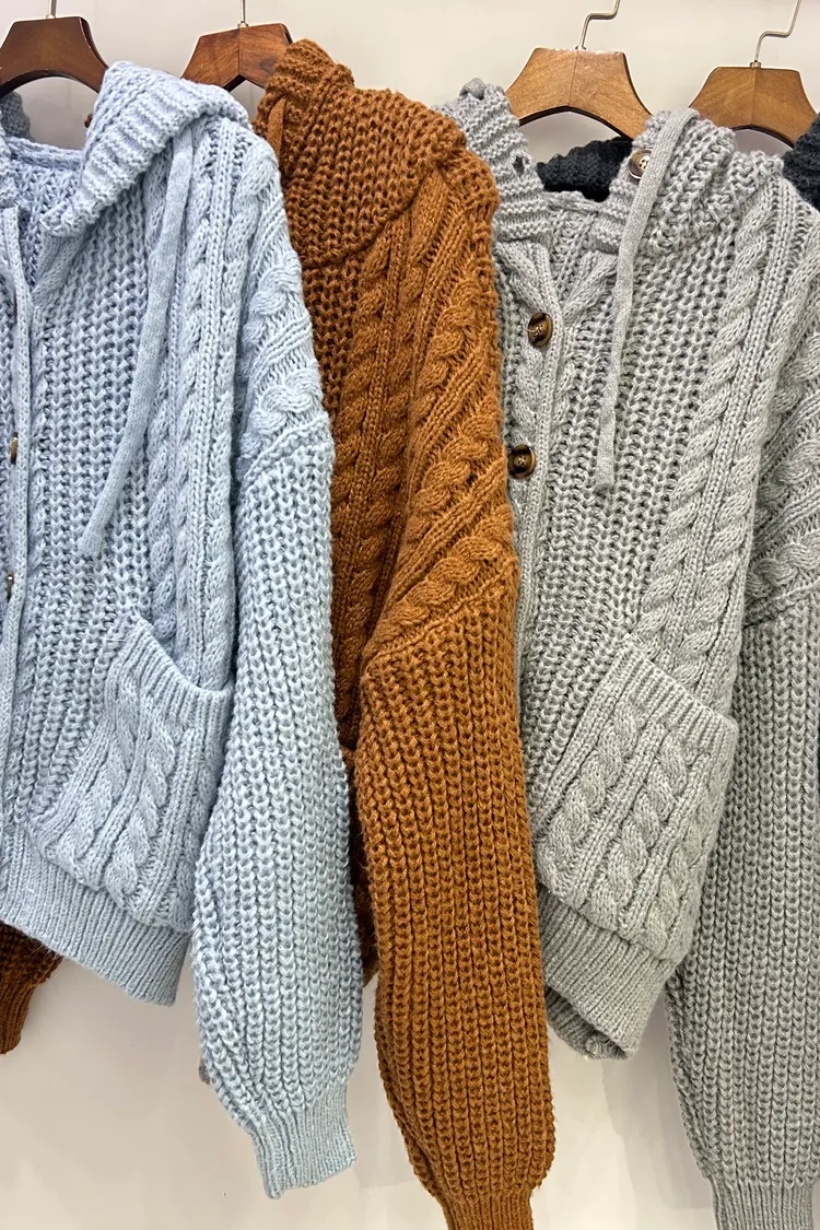 連帽針織麻花排釦上衣